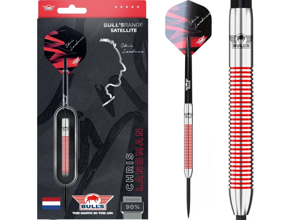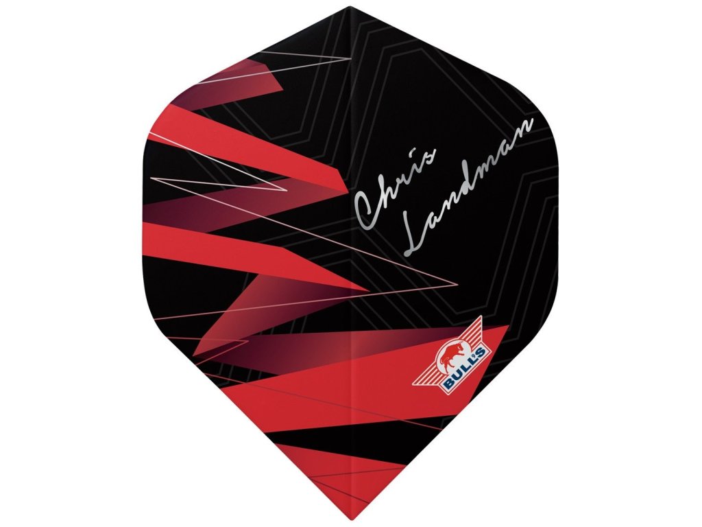 - Exkluzivní vlastnosti: na těle jsou vyryta loga Chris Landman a Bull's, což šipkám dodává jedinečný charakter. Sada obsahuje personalizované letky "Bull's Player 100 Chris Landman 90 No2", které jsou k dispozici i samostatně.