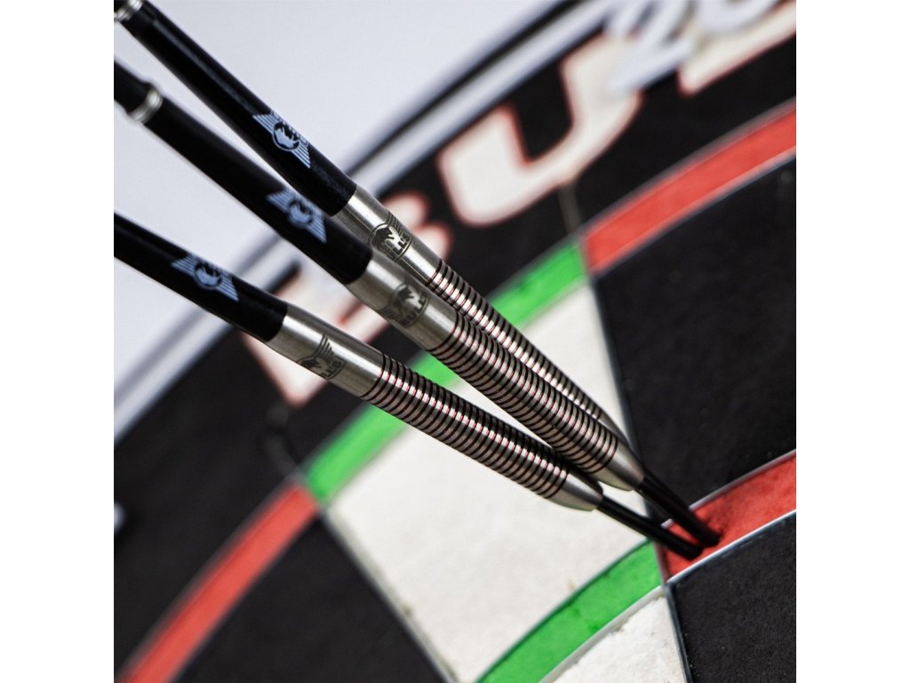 - Prémiová kvalita: Tyto šipky jsou vyrobeny z 90 % z wolframu a mají výjimečnou odolnost a štíhlý profil. Vysoký obsah wolframu zajišťuje úzké tělo, které umožňuje lepší koncentraci šipky a vyšší skóre. K dostání s hmotností 21 gramů.
