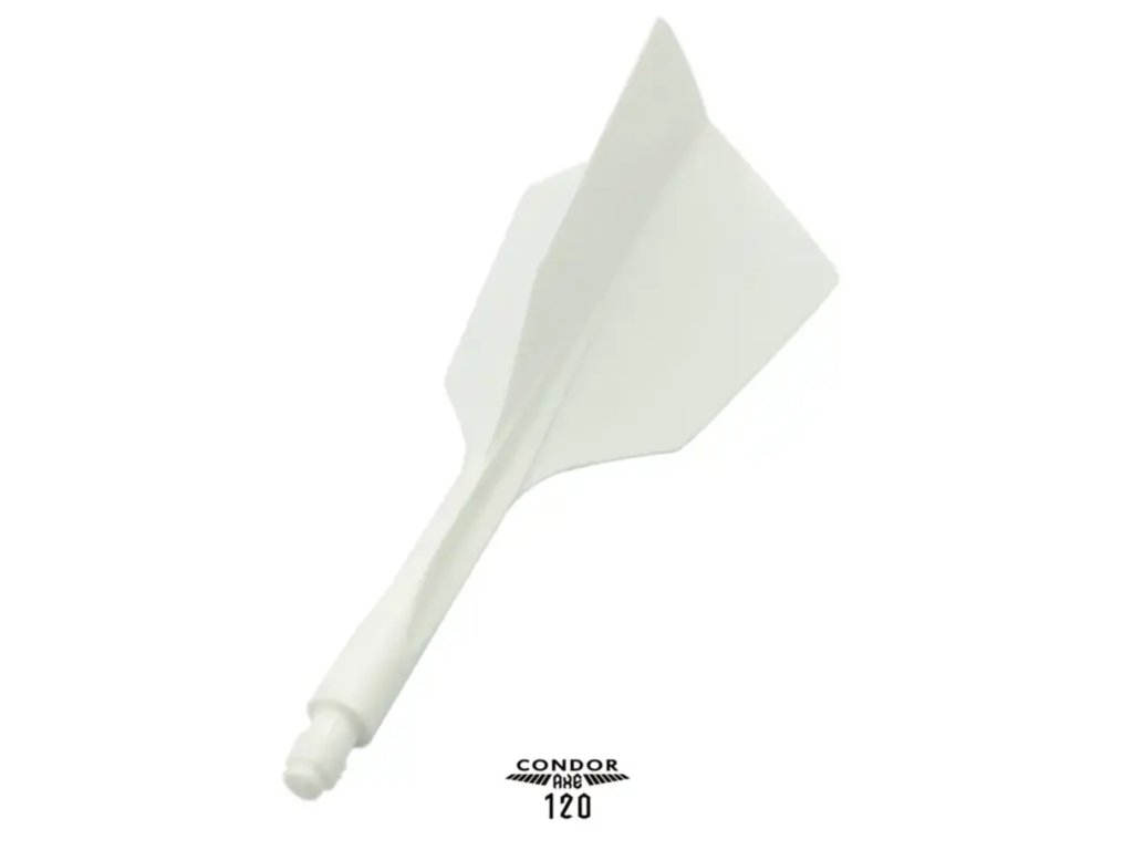 CONDOR AXE 120 NRW bílé – úzké jsou integrované násadky a letky v jednom kuse se štíhlým úzkým profilem a úhlem 120°. Bílé provedení nabízí čistý vzhled, vysokou odolnost a konzistentní let díky pevné konstrukci bez šroubových spojů.