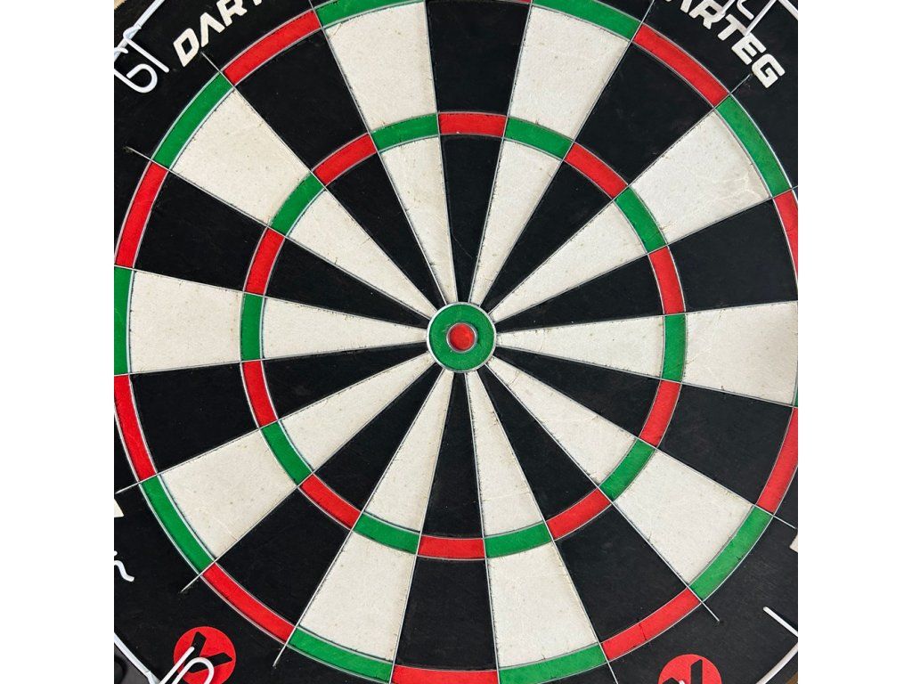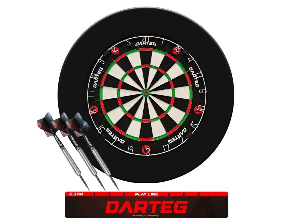 Kompletní šipkařská sada Darteg Standard s profesionálním sisalovým terčem, ochranným kruhem, wolframovými šipkami a příslušenstvím pro okamžitou hru.