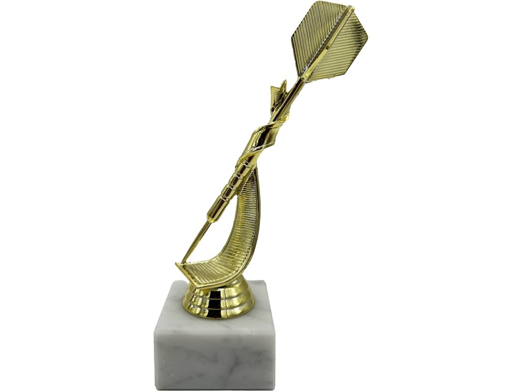 Elegantní šipkařská trofej se zlatou šipkou na mramorovém podstavci, výška 180 mm.
