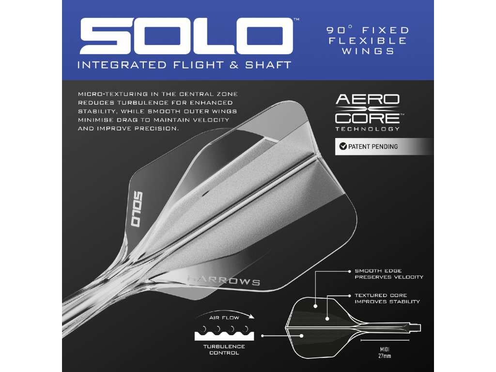Součástí setu jsou nové Midi Solo integrované letky a násadky s technologií Aero Core. Mikro-textura ve středové části snižuje turbulence, zatímco hladká vnější křídla minimalizují odpor vzduchu. Výsledkem je stabilní let, zachovaná rychlost a vysoká přesnost.