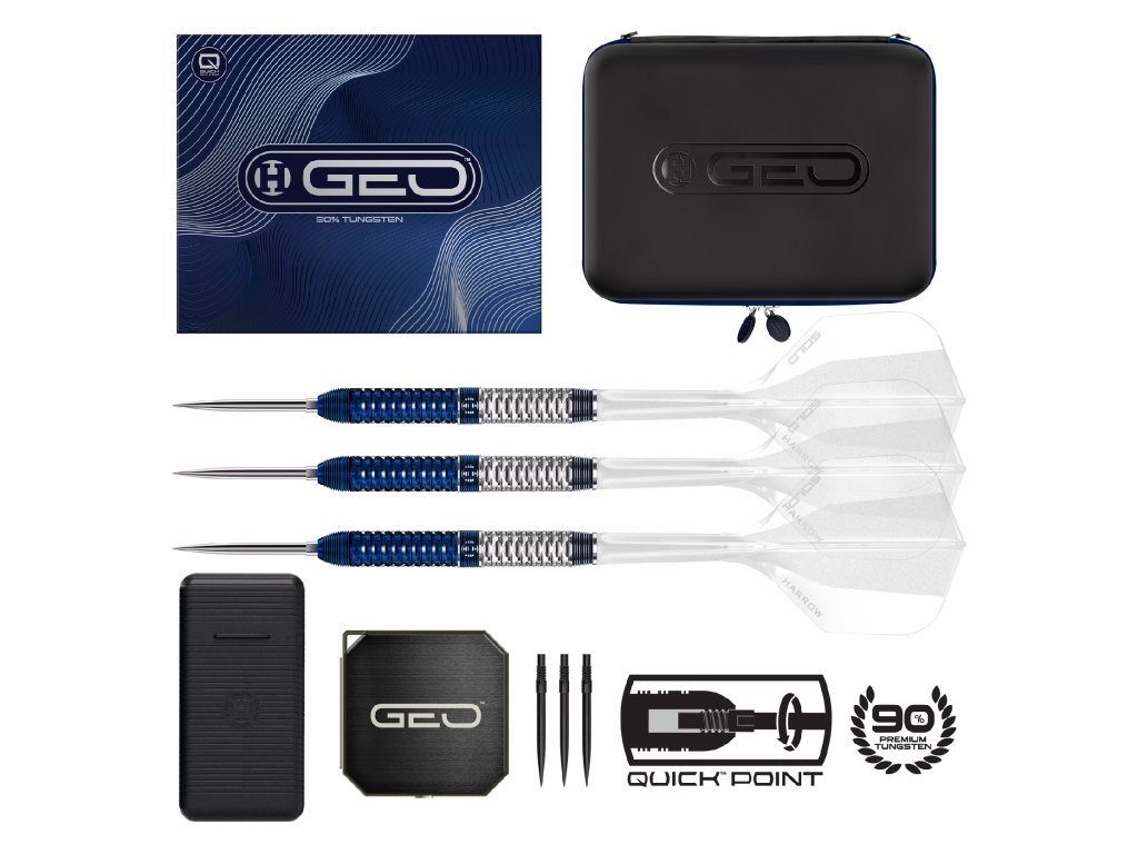 Harrows Geo 01 jsou moderní ocelové šipky z 90 % wolframu vybavené systémem Quick Point, které představují novou generaci designu značky Harrows. Nabízejí výjimečný úchop, vysokou stabilitu letu a možnost rychlého přizpůsobení hrotů.