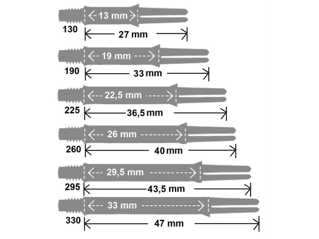 | 13.0mm | 27.0mm | Extra krátké |