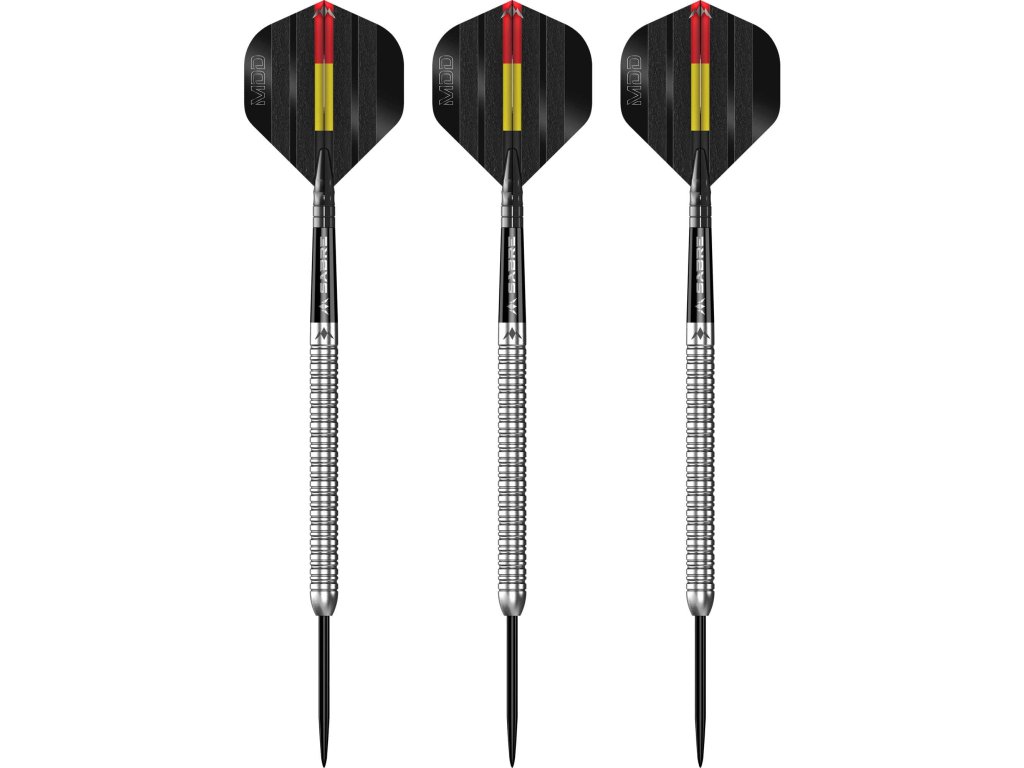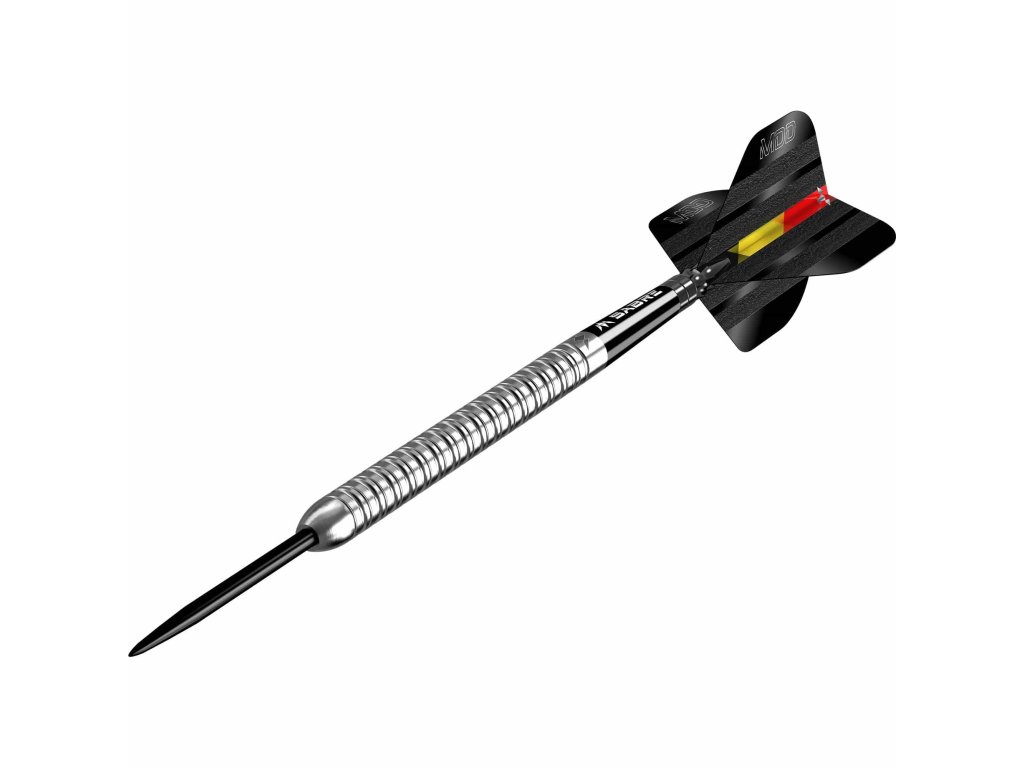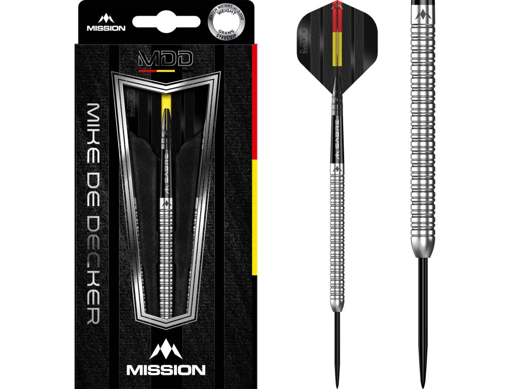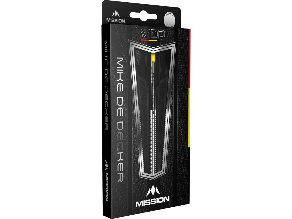 Profesionální šipky Mission Mike De Decker 26g s 95% wolframovým tělem, délkou 60 mm a prstencovým gripem po celé délce – navržené pro přesnost a kontrolu podle požadavků šampiona World Grand Prix 2024.