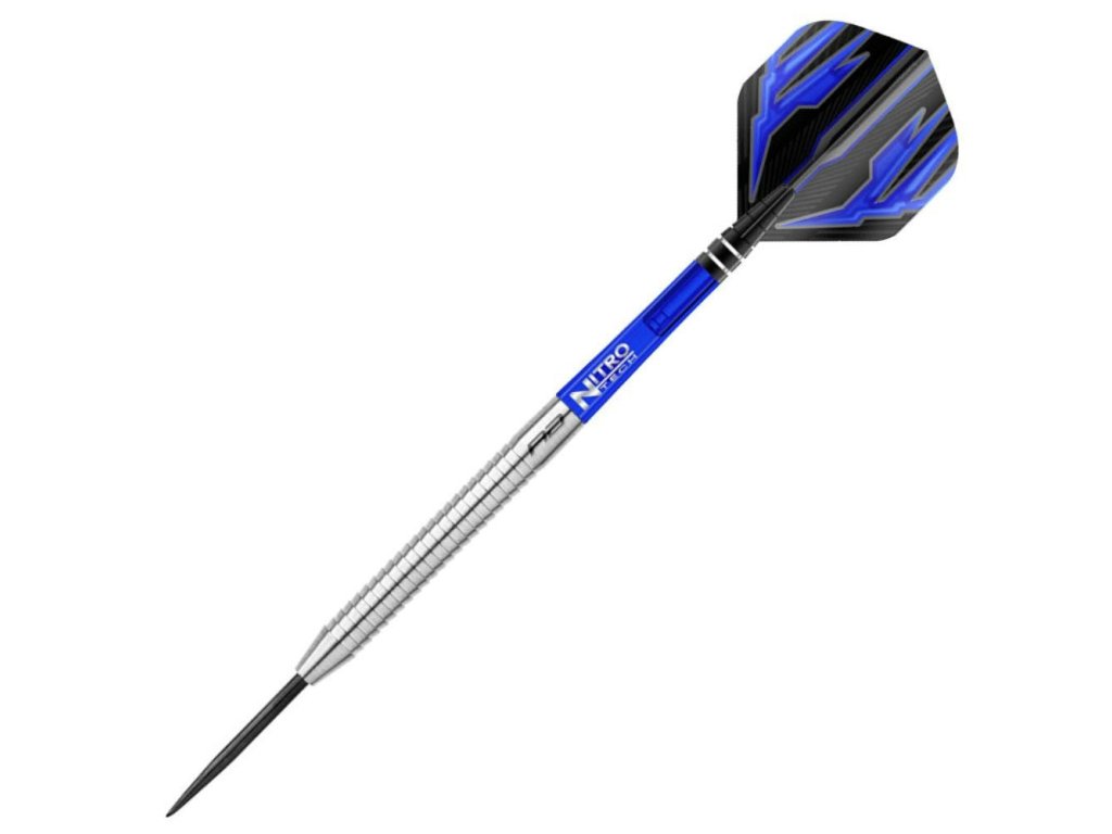 Šipky Red Dragon steel Razor Edge 24g, 85% wolfram, 6,8mm tloušťka, 50,8mm délka, 24g váha, modré Nitrotech násadky, Hardcore extra hrubé letky.