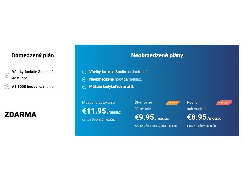 Pro neomezené používání funkcí Scolia Home 2 Flex je nutné zakoupit měsíční předplatné prostřednictvím webu Scoliadarts.com