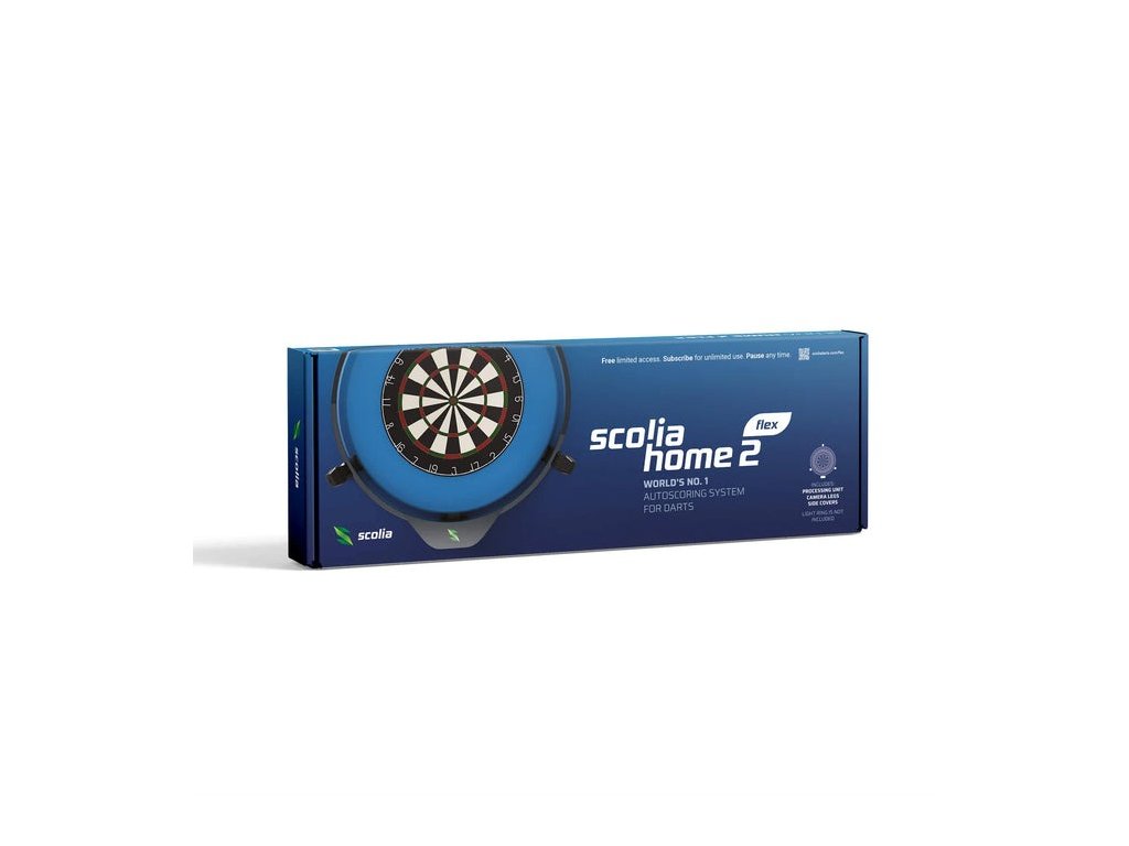 Scolia Home 2 Flex nabízí kompletní vysoce kvalitní systém počítání skóre pro hru šipky. Získáte okamžitý přístup ke všem funkcím až na 1000 hodin měsíčně. Pro překročení limitu 1000 hodin měsíčně je k dispozici volitelné předplatné Scolia.