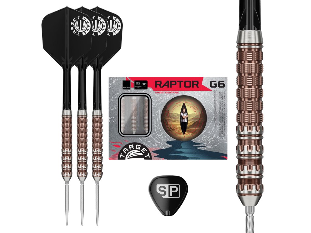 Ocelové šipky Target Japan Prime Series Raptor Gen6 vznikly ve spolupráci s japonským profesionálem, přezdívaným „The Raptor“. Šestá generace Prime Series je navržena pro hráče, kteří vyžadují agresivní úchop, dynamické uvolnění a maximální kontrolu při hodu.