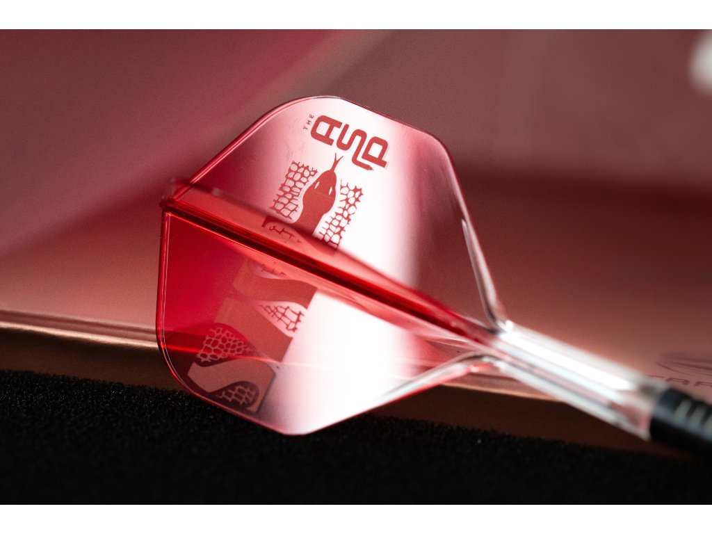 Letky a násadky v jednom kuse – K-Flex No.2 – poskytují dokonalou stabilitu letu v úhlu 90°, dlouhou životnost a minimální odpor vzduchu. Transparentní červené provedení se značkou „The Asp“ dokonale ladí s designem celého setu.