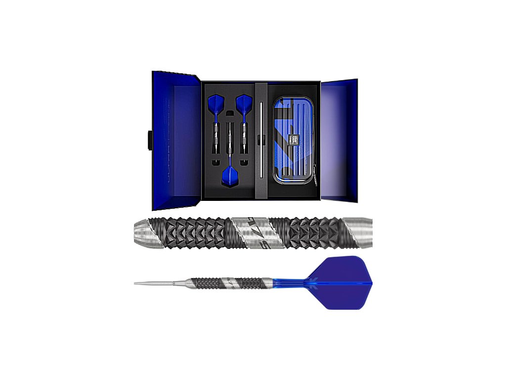 Steelové šipky TARGET 975 Ultra Marine 02 25g SP, 97,5% wolfram, 7,5 mm, 50 mm, modré letky, K-Flex, Swiss Point.