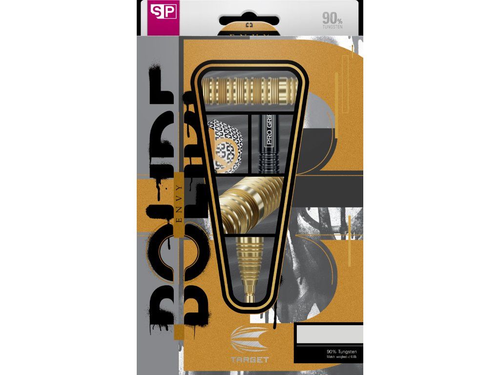 Target Bolide Envy 01 90% jsou ocelové šipky s rovným profilem, vyrobené z 90 % wolframu. Nabízejí konzistentní úchop díky radiálním drážkám, Swiss Point systém pro rychlou výměnu hrotů a stabilní let s Pro Grip EVO násadkami a Pro Ultra letkami.