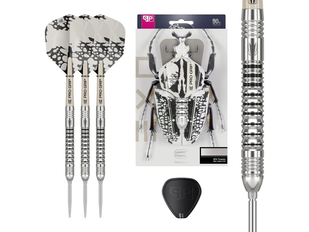 Šipky Target Exo 03 SP byly navrženy pro hráče, kteří hledají dokonalou rovnováhu mezi hmotností a tloušťkou tělíček. Tělíčka vyrobená z 90 % z wolframu zajišťují větší přesnost a kontrolu, zatímco elegantní radiální drážky dodávají šipkám jednoduchý, ale atraktivní vzhled.