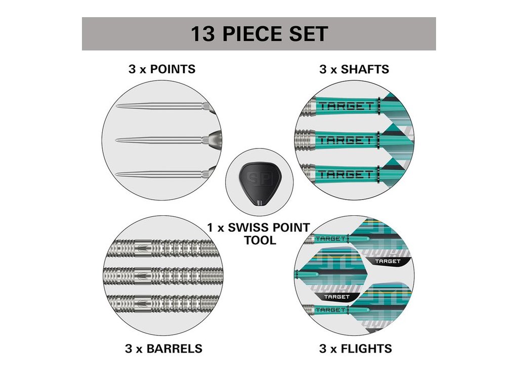 Jednou z revolučních inovací, které Target Darts přinesl do světa šipek, je systém Swiss Points. Tento systém umožňuje hráčům snadno a rychle měnit hroty šípů, aniž by museli vyměňovat celou hlaveň. Tato flexibilita nejen usnadňuje přizpůsobení různým herním situacím nebo osobním preferencím, ale také výrazně zvyšuje trvanlivost a použitelnost šípů.