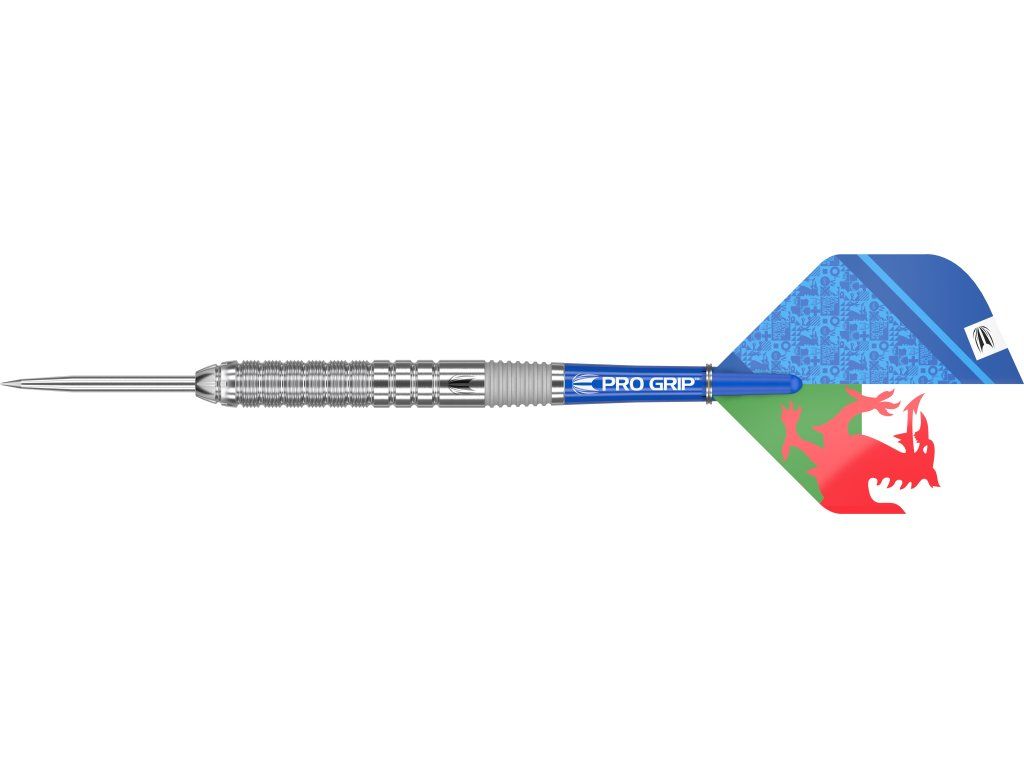 Produkt: sada šipek TARGET steel Lewy Williams, hmotnost 23 g, obsahujících 90% wolframu. Tato sada byla vyvinuta s podporou Lewyho Williamse, známého jako "princ z Walesu". Šipky se vyznačují konstrukcí z 90 % z wolframu a nabízejí různé úchyty a povrchové úpravy.
