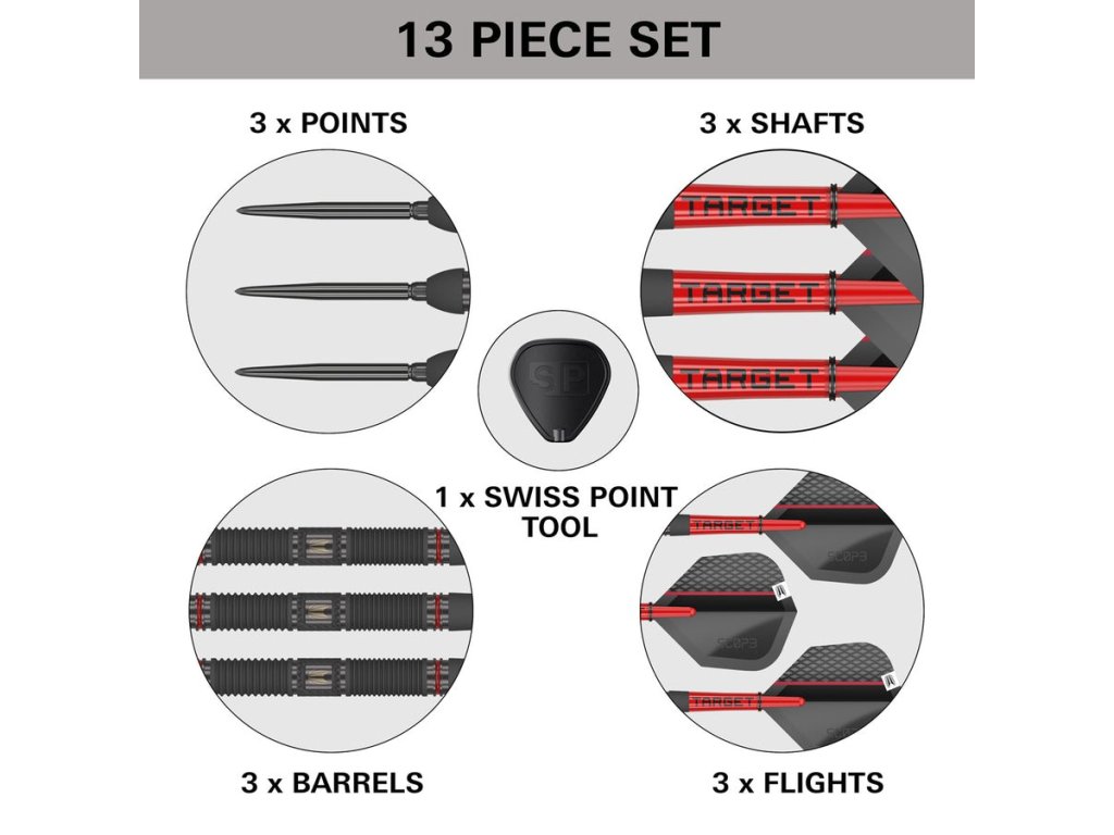 Jednou z revolučních inovací, které Target Darts přinesl do světa šipek, je systém Swiss Points. Tento systém umožňuje hráčům snadno a rychle měnit hroty šípů, aniž by museli vyměňovat celou hlaveň. Tato flexibilita nejen usnadňuje přizpůsobení různým herním situacím nebo osobním preferencím, ale také výrazně zvyšuje trvanlivost a použitelnost šípů.