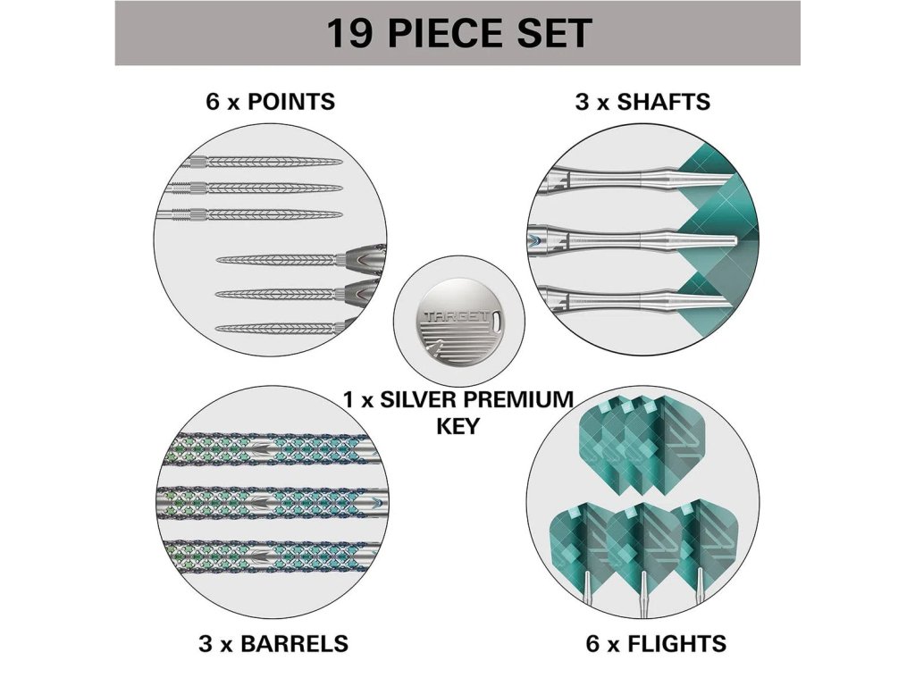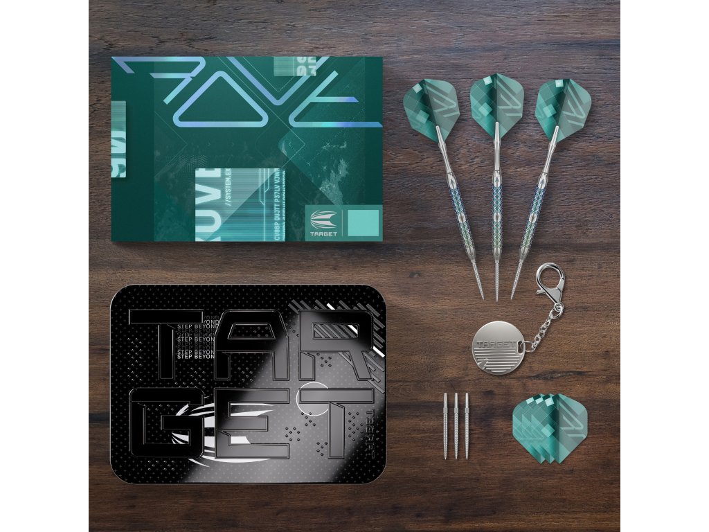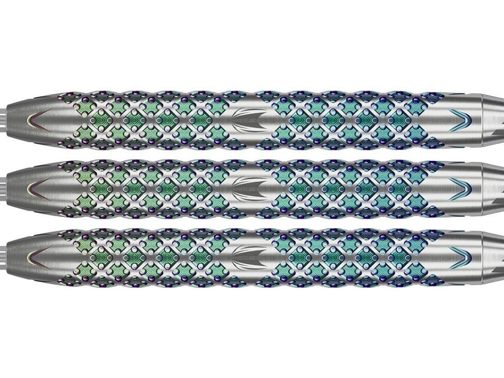Šipky Target SP Rove 01 byly navrženy pro hráče, kteří touží po dokonalosti a chtějí dominovat při každém hodu. S tělíčky vyrobenými z 90 % wolframu nabízejí mimořádnou odolnost, rovnováhu a přesnost. Díky futuristickému zelenému karbonovému povlaku s diamantovým leskem působí nejen stylově, ale i funkčně – zajišťují jistý grip a stabilní let.