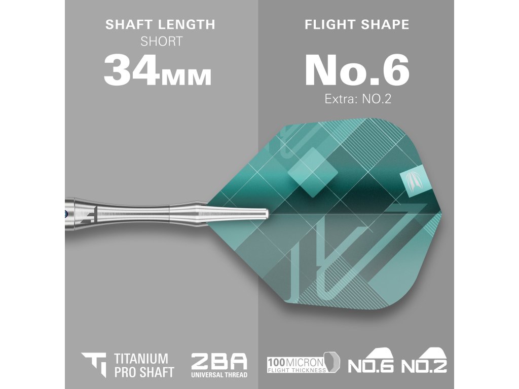 Lehké a pevné Titanium Pro násadky (krátké, 34 mm) poskytují skvělý pocit při hodu a vynikající stabilitu během celé hry.