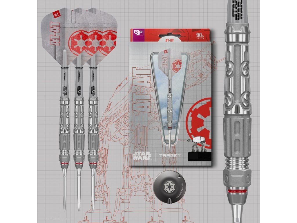 Target STAR WARS™ AT-AT 90% Steel Tip jsou prémiové šipky vytvořené v oficiální spolupráci s Walt Disney Company. Design vychází z legendárního AT-AT walkeru a spojuje technický, industriální vzhled s moderními technologiemi značkyTarget .