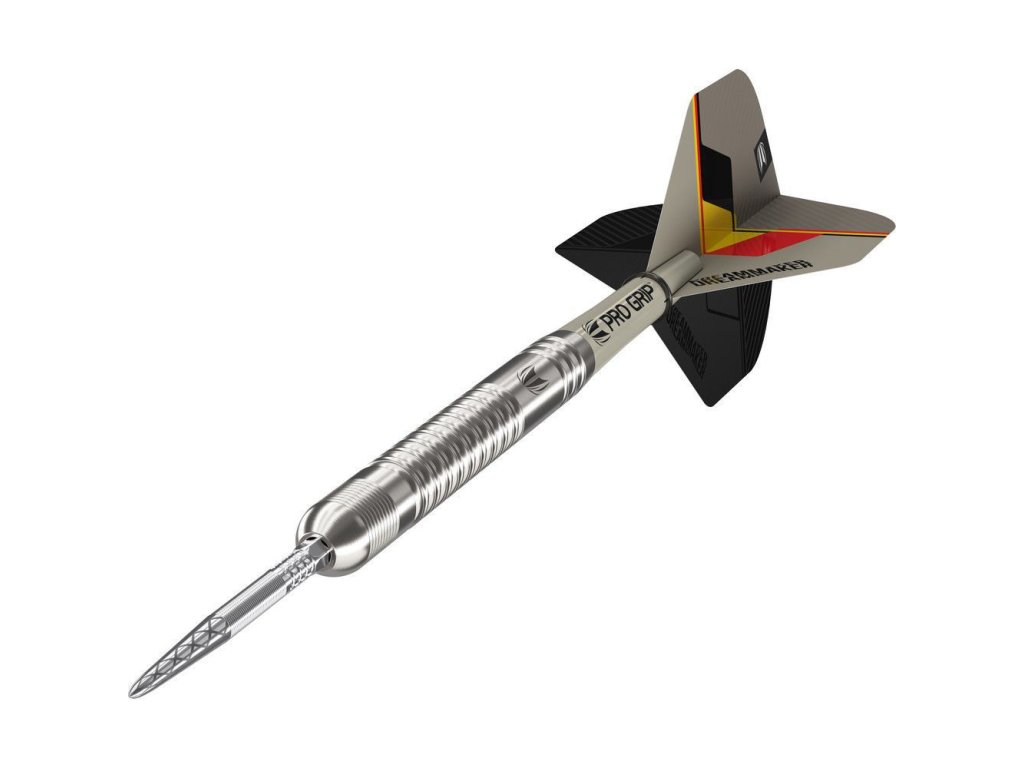 Profesionální sada šipek TARGET steel Swiss Point Dimitri Van Den Bergh Gen2, vyrobená z 90 % z wolframu, je výsledkem spolupráce s profesionálním hráčem Dimitrim Van den Berghem, přezdívaným "Dream Maker". Tyto šipky jsou díky jedinečné kombinaci drážek a profilu navrženy tak, aby vyhovovaly různým stylům držení.
