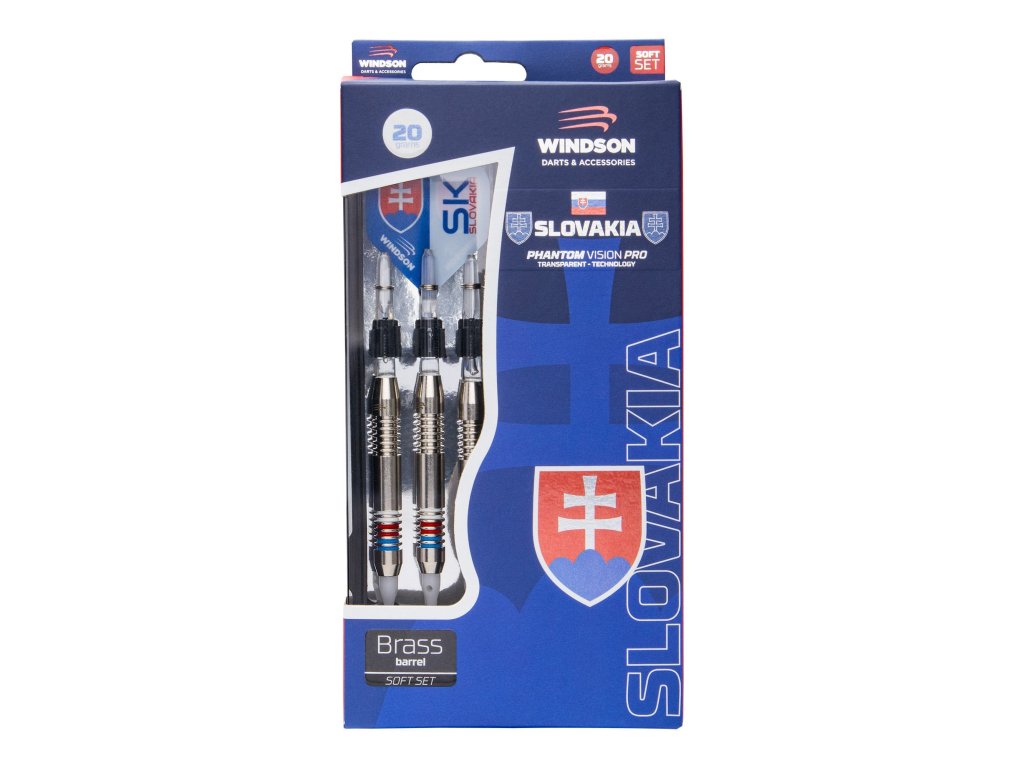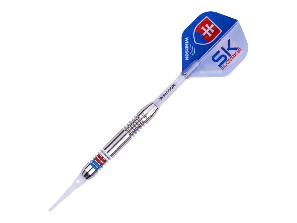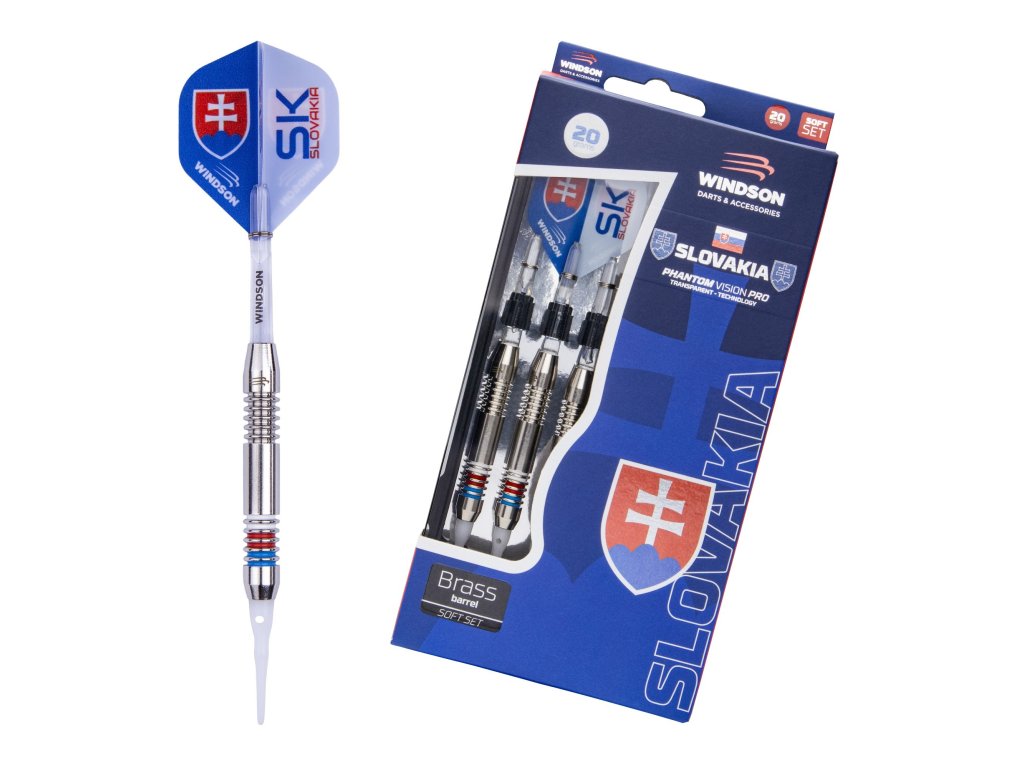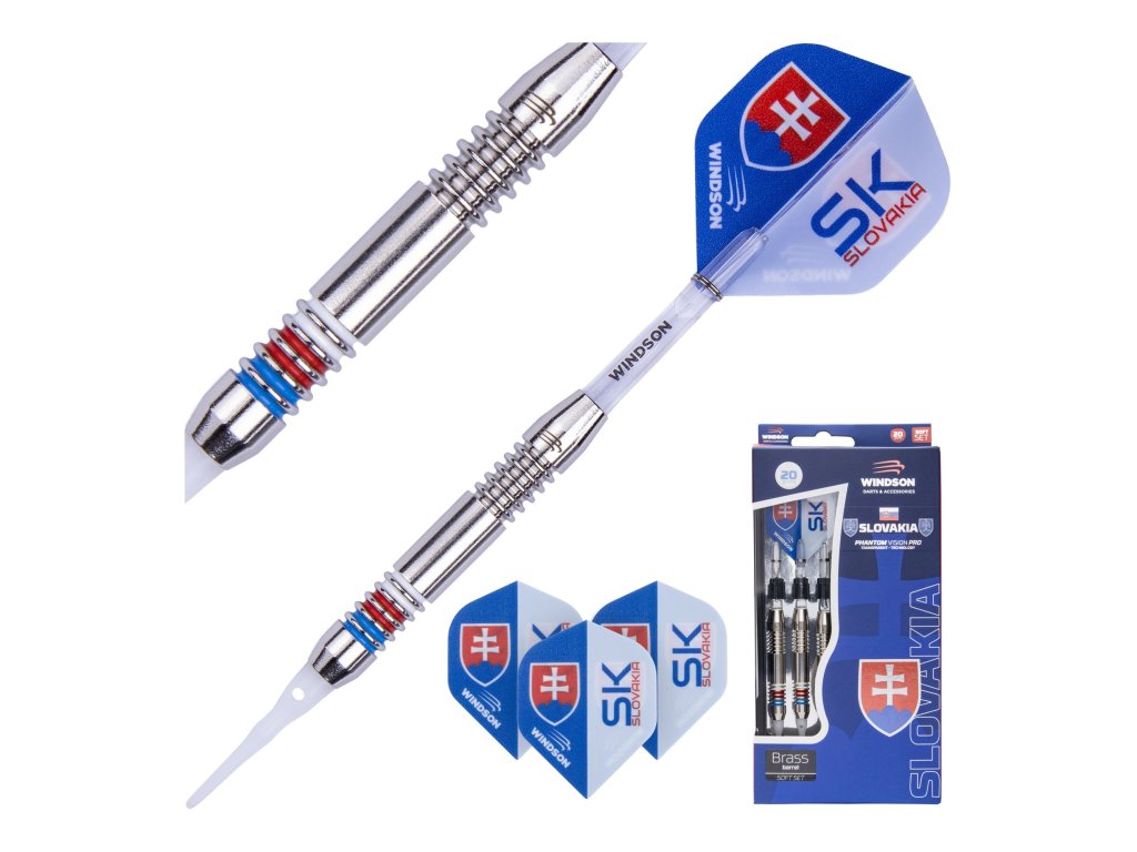 Kvalitní soft tip set SLOVAK SOFT 20g s mosazným barrelem (18 g), transparentními shafty (36 mm) a letkami 100 mikronů v designu české vlajky - ideální pro začátečníky i pokročilé.