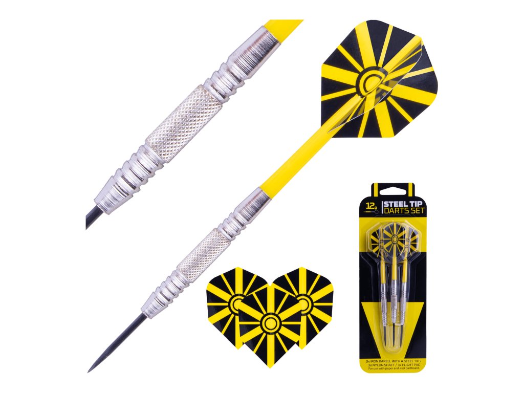 Sada obsahuje klasické ocelové šipky s ocelovým hrotem, které jsou určeny pro sisalové terče. Železné tělíčko s jemným vroubkováním zajišťuje pevný úchop a lepší kontrolu při hodu.