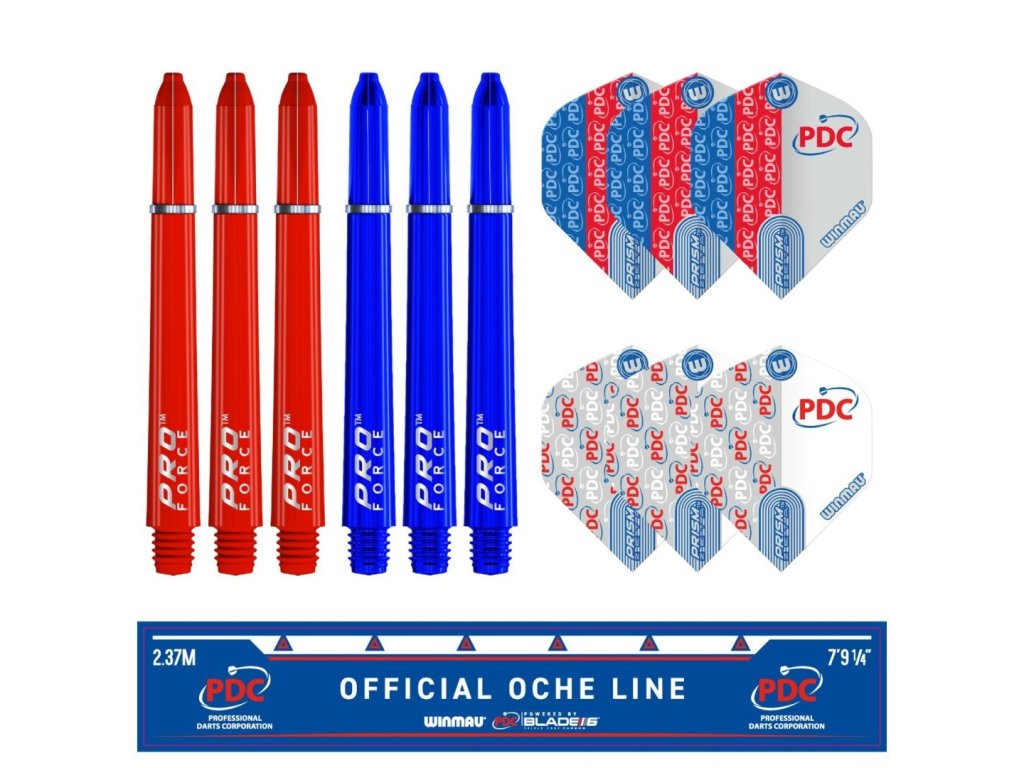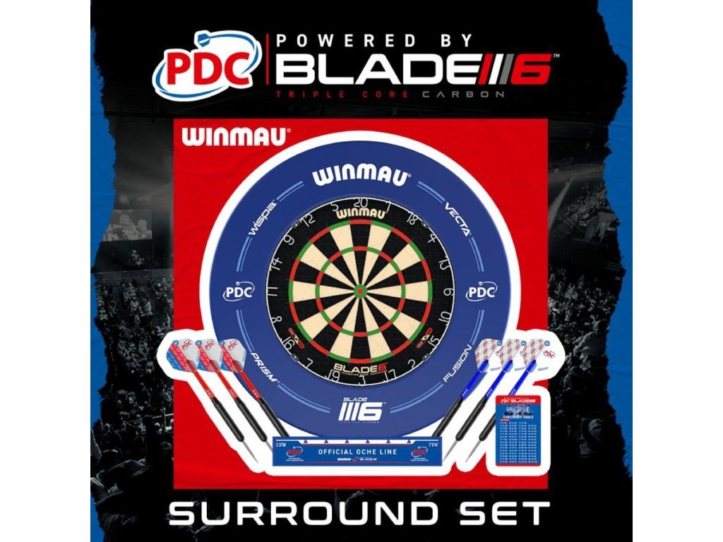 Sada obsahuje ikonický sisalový terč Blade 6 a terč Winmau PDC Surround. Kompletní sada obsahuje také dvě sady šipek (celá šipka váží 20 g), lajnu a zavírací kartu.
