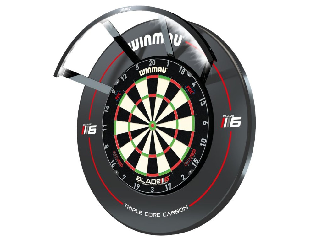 Optimální osvětlení šipky s úhlem rozptylu 120° a velmi snadnou instalací. Tento systém osvětlení je navržen tak, aby se bez problémů připojil k sisalovému terči, a je kompatibilní s použitím nástěnného krytu, ale jeho použití není nezbytné.
