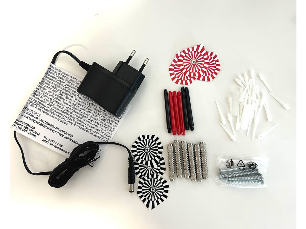 - 6 kompletních šipek s plastovými hroty