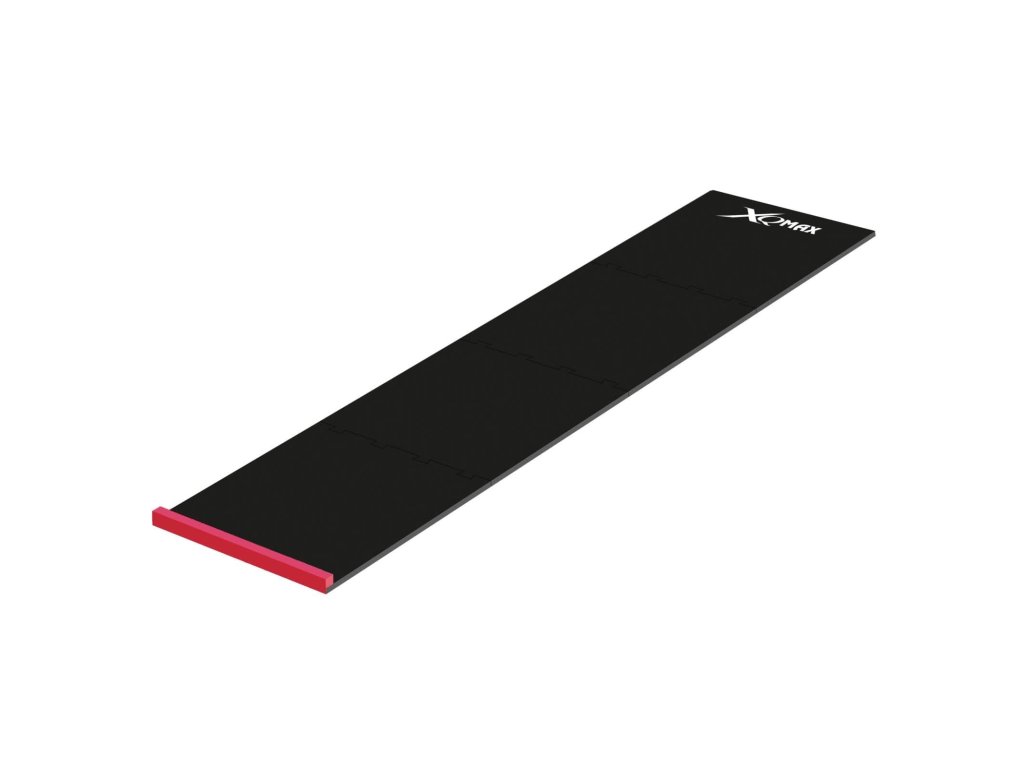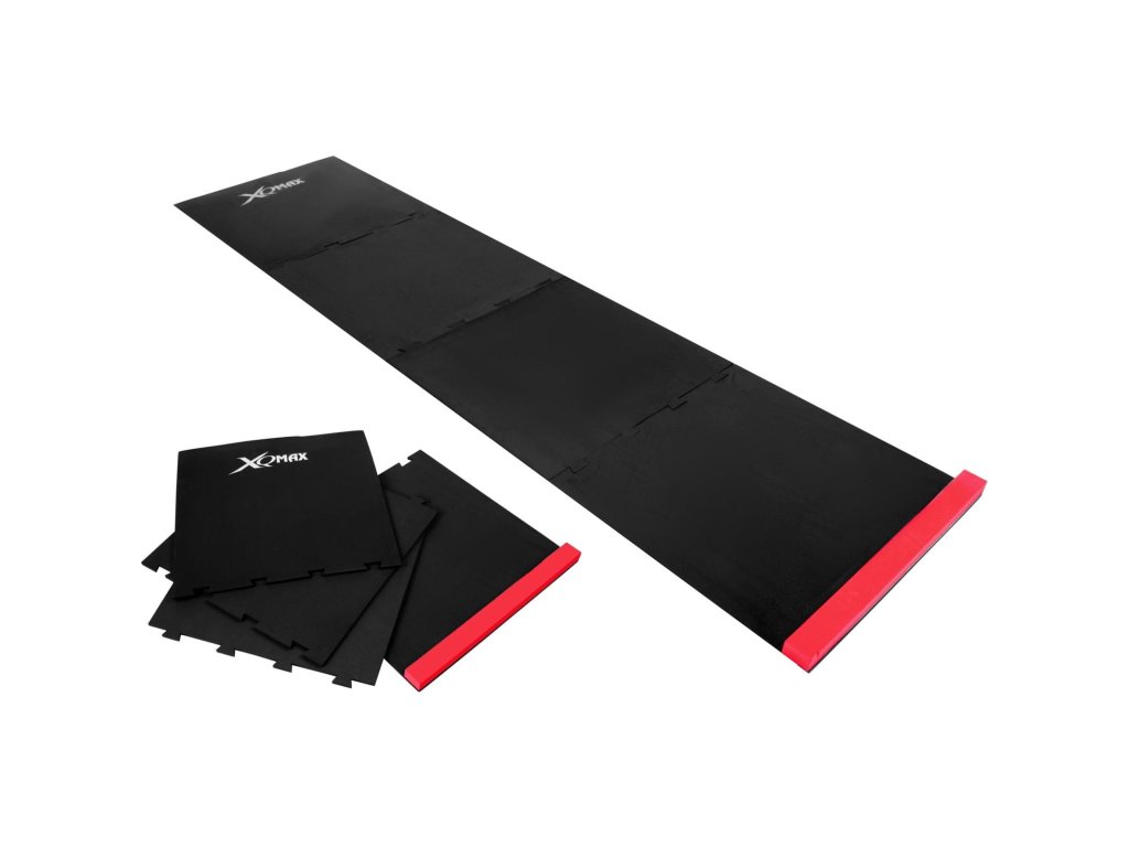 Profesionální čtyřdílná černá šipkařská podložka XQMax s odhozovou lištou.