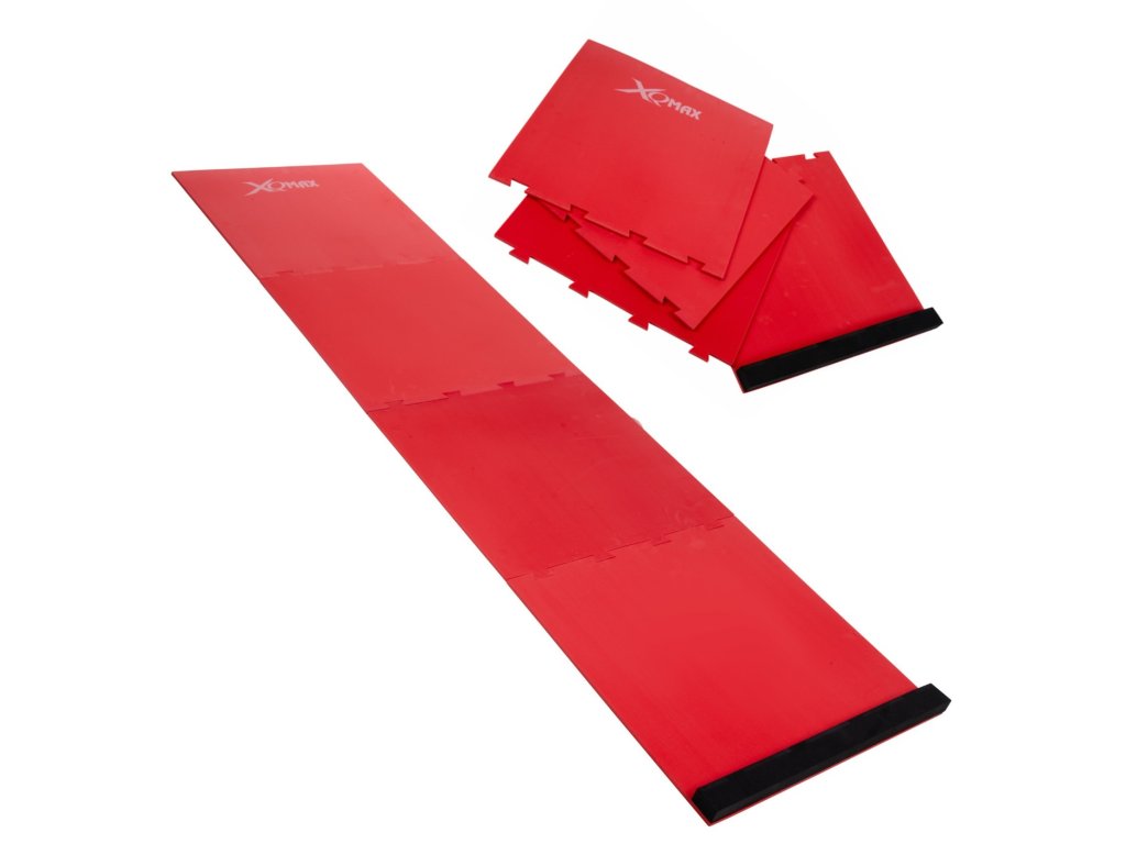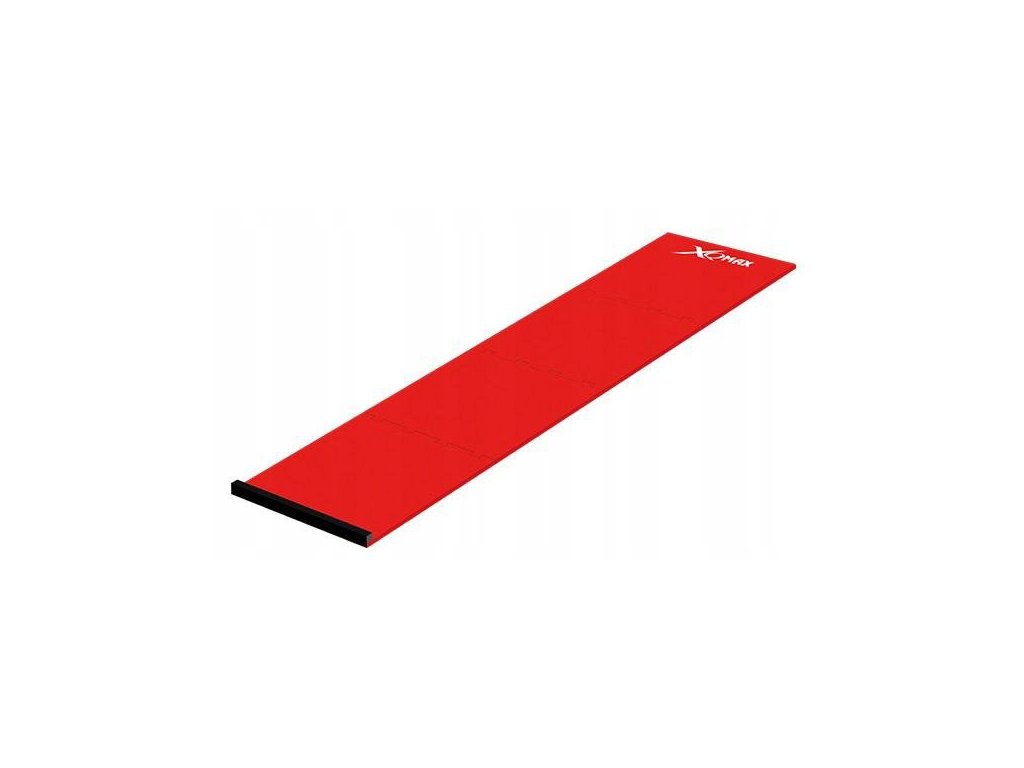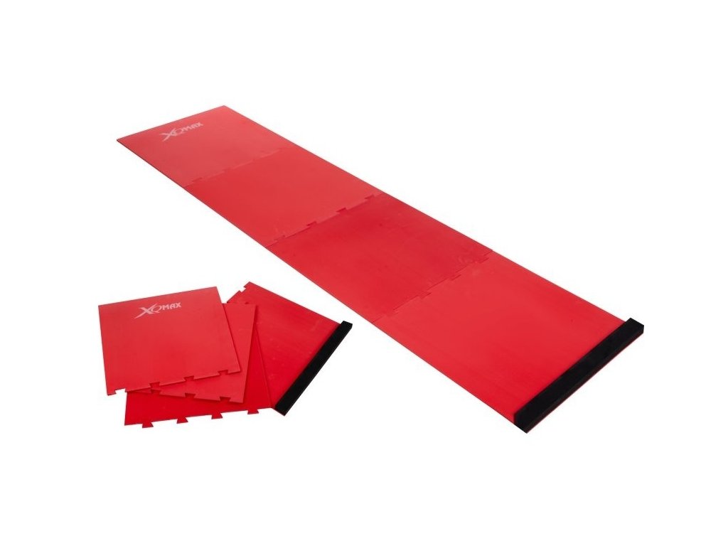 Profesionální čtyřdílná červená šipkařská podložka XQMax s odhozovou lištou.